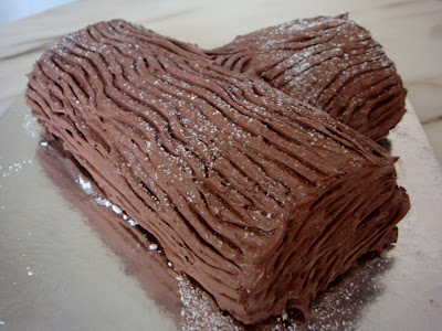 The moment I saw it online, I thought your buche de noel looked superb. If dusted with snow powder or confectioner's sugar, it'd look even shiok!